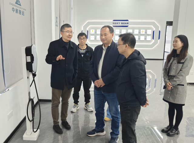 考察组一行先后走进公司产品展示中心、研发实验室和车间,详细了解中科智远在新能源充电桩、新能源汽车安全防控系统、储能装备智造等领域的技术研发、生产工艺、市场应用及产学研合作成果。